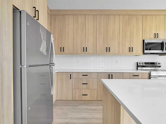 Corner unitDurable vinyl plank flooringQuartz countertopsStainless steel appliancesIsland bar seating
