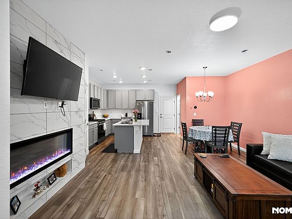 Built-in fireplaceWasher and dryerGarbage disposalTop-notch appliancesModern kitchenOpen floor plan