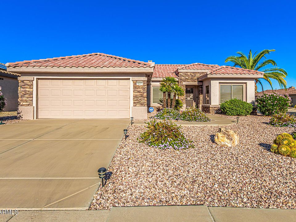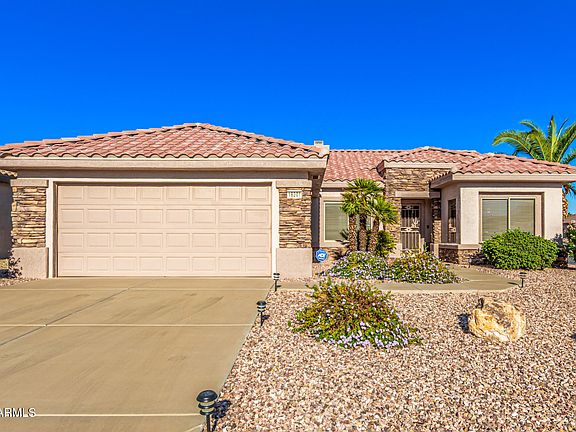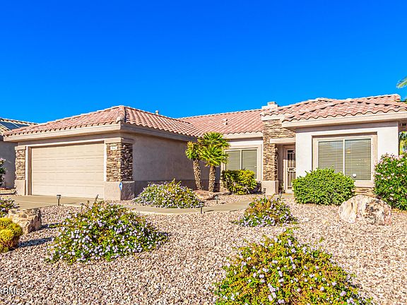 Beautiful Madera Model in highly sought-after The Grand*Corner lot with North/south exposure* lovely Curb appeal abounds with easy-care front yard and backyard featuring a relaxing spool (small pool) , perfect for cooling off or enjoying a soak. 2-car garage , Washer , dryer, Refrigerator, Stove, Dishwasher, reverse osmosis*Peninsula in kitchen with eating bar*Bay window in Master Bedroom*Carpet in Bedrooms & den*All Furniture stays* Active Adult Community has 5 swimming pools, premier golf courses, fitness center, tennis and pickleball courts, walking indoor track, an abundance of clubs*Talk about the perfect retirement home!