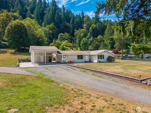 Endless possibilities with the perfect blend of space, comfort, and natural beauty on this expansive 5.8 acre property! Updated one-level home features 3 bedrooms and 1.5 bathrooms with a bright and open great room layout that’s perfect for both everyday living and entertaining. The generously sized kitchen with stainless steel appliances provides ample counter space and storage, making it a central hub for cooking and gathering. Hardwood floors add warmth and charm throughout the main living areas. Step outside through the oversized glass sliding door and embrace the tranquility of your own backyard oasis complete with outbuildings and fruit trees. Located within a short distance to the scenic Cedar River, local trails, and Tahoma Schools.