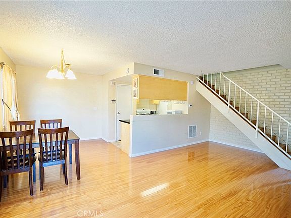 Cozy 2 story townhouse with 2 bedrooms / 1 bath / 1 carport & 1 tandem parking space; Open & airy floor plan; Functional remodel kitchen with newer granite counter top & cabinet; Newer A/C system; Newly installed laminated wood floor & double panel windows; Refrigerator, Microwave, Dining Set included; Markets, restaurants, shopping plaza, pharmacy, gas station, banks, and bus stops are nearby; Easy access to 60 freeway, Fullerton Road.
