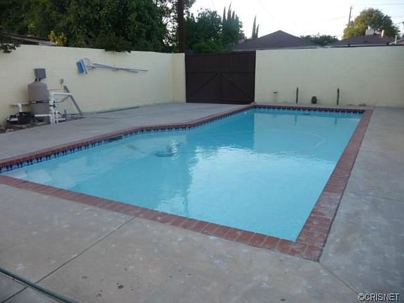 Standard Sale** This lovely 2 story Reseda pool home offers a bright and open floor plan with over 1700sq.ft with 3 bedrooms and 2 Baths. Walk into the foyer that leads to a spacious kitchen with plenty of cabinets and counter space including a eat-in kitchen area and separate laundry room. Enjoy the large living room with a fireplace and large windows and sliding door with a view of the backyard. Downstairs are 2 spacious bedrooms and hallway with lots of storage and beautiful hardwood floors which leads into the family room with built-ins and more sliders to the backyard. Upstairs features a large master bedroom with bathroom and walk in closet. You can also enjoy an additional closet and private balcony with mountain views. Backyard features covered patio, sparkling salt-water pool and RV parking. The 2 car garage is detached with great storage. This home has been newly painted with a newer roof in 2013. Close to YMCA, Police Station, Park, Shopping, Freeways and much more. This is
