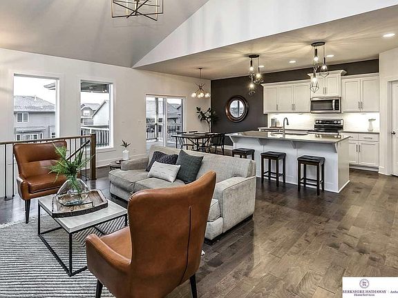 New construction walkout ranch backing to trees and completely private! This is the lot you have been waiting for! A modern farmhouse vibe throughout with fantastic upgrades you don't normally see in this price point. The staircase placed in back of the home creates an open floorplan unique to many ranches. Vaulted ceiling with stone fireplace and wood mantel in the family room. The REAL wood floors extend into kitchen creating a warm feel against the all-white cabinets. All kitchen appliances already in the home including a wine/beverage fridge as well! Quartz in kitchen with large walk-in pantry. A wall of windows brings in tons of natural light and you can walk onto the covered deck with maintenance free trec decking. Huge closet and walk-in tiled shower make the master suite feel spa-like. 3 bedrooms on the main level. Fun patterns on the laundry and guest bathroom floors. This house is a true standout! Still time to make your selection!