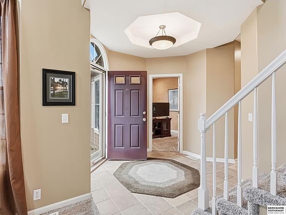 Immaculate one-owner home in highly sought-after Elkhorn schools & The Grove! Prime location w/ easy Dodge St access, shopping, dining, & groceries nearby. Oversized corner lot w/ private pickleball/basketball court, brand-new deck & invisible fence perfect for outdoor fun. Inviting two-story foyer, with ample natural light pouring in. 4 beds + office (easy 5th bed) + bonus office nook. Spacious unfinished basement w/ wet bar & bath rough-ins ready for man cave, playroom, or theater. Smart-wired w/ 48+ Cat6 cables & 6-zone whole-home audio (living, family, kitchen, primary bed/bath, den). Walk-in pantry + extra-deep 4ft garage provides ample storage space! Steps to Grove Park: trails, playground, splash pad, tennis/pickleball, & more. Ultimate family neighborhood!