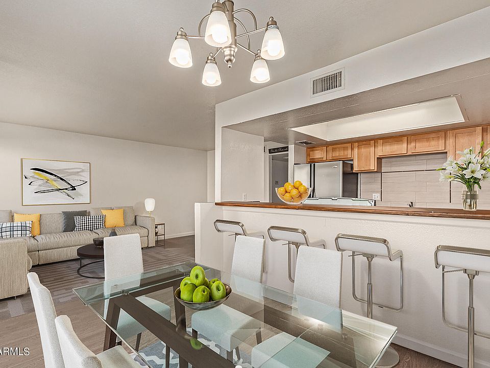 Amazing North Phoenix Location!! Centrally located near hiking trails, Costco, Desert Ridge Marketplace, and easy access to the 101 and the 51! This highly-desirable upstairs unit was recently updated with new interior paint, flooring, countertops, cabinets, and fixtures. Move-in ready home featuring a low monthly HOA fee that covers garbage, water, and sewer expenses. Enjoy the added amenities of a large community pool, covered parking, and the convenience of being situated in the esteemed Paradise Valley School District!