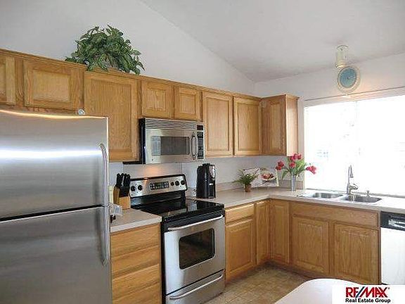 Sunshiny bright & cheerful home! Open floor plan w/cathedral ceilings. Oversized windows bring in plenty of natural light. Large master suite w/walk-in closet & bath w/double sinks. Eat-in kitchen features stainless steel appliances, breakfast bar, and pantry, plus dining room w/access to deck overlooking backyard. Rec room in the finished basement w/corner fireplace. Hurry in!