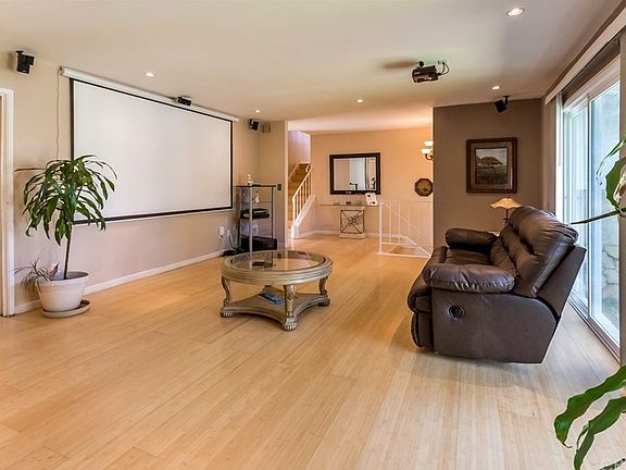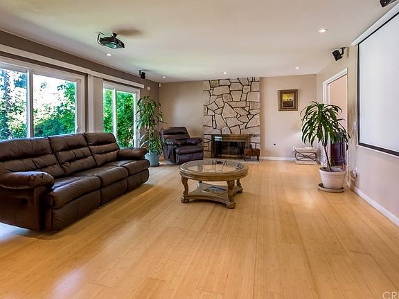 Entertainers Delight. Welcome to this home through Beautiful Custom Beveled glass doors. The entry way is full of Natural light, the Living room has a Media room setting with a roll down screen, Bose speaker system and cozy fireplace. Kitchen has been updated with the finest stainless steel appliances, granite counters, custom cabinets and bamboo flooring also featuring a custom moveable center island with matching cabinet and granite top, along with a breakfast bar. Stepping down to the Family room also featuring a cozy fireplace, crown moldings, recess lighting and a storage access for under the stair well. There is a down stairs bedroom and adjacent bath room. The up stairs features 3 spacious bedrooms with custom closet doors, one bedroom has it's own balcony over looking the rear yard. The Master bedroom has his and hers closets, recess lights a Mater bathroom with marble counter and floor. The rear yard has beautiful pool and spa, built in barbeque, a basketball court, grassy area's and possible RV parking and a 3 car garage. The location of this home is in the Granada Hills Charter School District , Darby Elementary District, 118 Freeway is minutes away as well as shopping, eateries and places of worship. Here is a