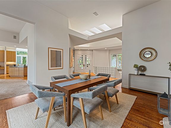 Nestled in Issaquah’s Montreux neighborhood, Pacific Northwest at its best unfolds here. With over 3,800-square-feet, this Ben Leland designed home was built for gracious entertaining. Overlooking Lake Sammamish, picture windows showcase views of the Cascades framed by lush greenery, bringing the outdoors in while inviting ample daylight into the home. Warm chilly evenings with a wood-burning fireplace in the main living room, gather with friends for movie night in the theater room, or simply relax on the back patio as the sun sinks into the distance. Each room was crafted for ease, with spacious home office, wine cellar, large main floor primary bedroom with ensuite, and more. Sited on a shy half-acre lot, enjoy privacy and peace here.