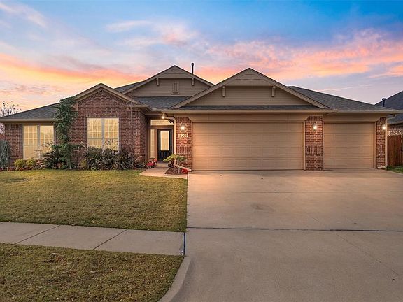 You must see this beautiful home. Curb appeal immediately jumps out when you arrive; complete with mature trees. Nestled in the heart of Valencia, this exquisite 4 bed/3 car garage home you will feel right at home in this highly sought after neighborhood located in the Edmond School District Stepping in through the front door, you'll immediately notice tons of natural light and the open floor plan. This home is in pristine condition, and just awaiting its new owner. Move in ready. New carpet, new interior paint and newly painted cabinets. Home boasts 4 bedrooms, formal dining or study, two living areas and a gorgeous kitchen. Beautiful entrance with large foyer leading to formal dining, office or flex space that has door to kitchen. Entry leads to a large living area that flows into the kitchen and family living room. Open floorplan is inviting and seamlessly flows into dining area, living areas and kitchen. Perfect for entertaining. Kitchen has lots of cabinets, center island, stainless steel appliances and pantry. Family room flows flawlessly to the kitchen has a beautiful fireplace. This space will be the hub of your home. Retreat to the cozy primary bedroom that features a gorgeous ensuite spa-like bathroom and oversized walk in closet. Mother in law plan and additional 3 bedrooms are well appointed and tucked away from the primary. Updates galore. Lots of storage. Big corner backyard. The back patio has custom pull down shades to enclose it as a room and is absolutely perfect for enjoying every season of our unpredictable Oklahoma weather. Neighborhood amenities include walking paths, soccer fields, stocked ponds, splash pads, ball courts, playscapes, 30 acres of parks. Close to turnpike, shopping, restaurants and medical. Don't miss out on the chance to call this gem your own. Schedule your showing today and experience the best of Edmond living! Welcome home!