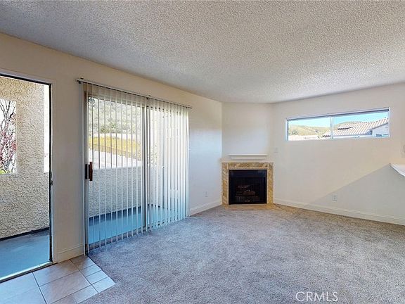 This highly desirable upper floor end unit is move in ready, and has tons of natural light giving it an open and airy feel. Features include: A spacious primary bedroom with a private updated bath, a guest bedroom and updated full guest bath, an indoor laundry with a newer stacked washer/dryer which is tastefully concealed by a custom rolling barn door, and a nicely appointed kitchen with newer stainless appliances, tile flooring, updated lighting and a breakfast bar. The ample main living and dining areas have a gas fireplace, ceiling fan and patio doors leading to the private balcony with a view of the grounds and hillside. Plus, as only available in the limited number of end units, an additional window at the living room side wall for sunlight, a bit of a view, and cross ventilation. This lovely home comes complete with a newer central heating and air conditioning system, garage parking for two cars, and a private storage room. HOA amenities include: Basketball Court, Tennis Court, Pool, Spa, and Clubhouse. Plenty of guest parking too! All within a fully fenced and gated hillside community.