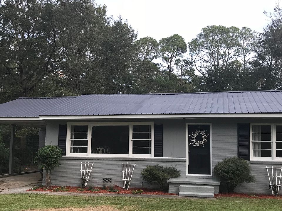 This 3 bedroom 2 full bath 1737 sqft. brick home has been beautifully updated and move in ready! There are solid hardwood floors throughout which have just been refinished with Bona products. Modern porcelain tile and travertine in the bathrooms and kitchen. The kitchen has beautiful granite counter tops with a glass mosaic backsplash and stainless steel appliances. The home has a fabulous flow and open layout. With an eat in wrap around bar and informal dining area opening up into a large living room with pendant lighting and a huge window looking out into the backyard. The master bedroom is spacious and has a walk in closet and a beautiful on suite full bathroom. This house sits on a half-acre lot with a covered carport, laundry room and a large backyard with a big patio with built in benches, a fire pit and a concrete block shed. This home has a metal roof, brick walls, new central heating and cooling system and every surface inside has been re-done.