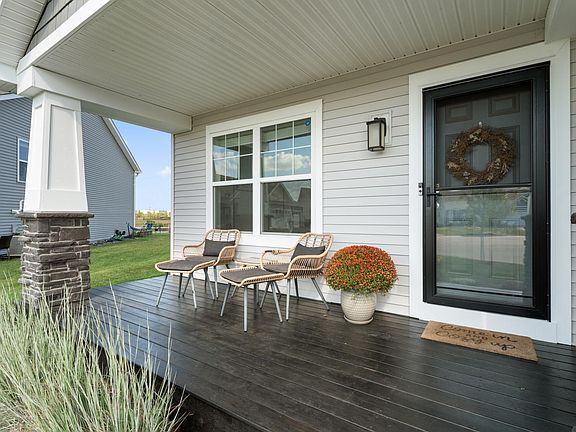 Welcome to this beautiful home in the sought-after Meridian Fields neighborhood of Carver! A charming covered front porch with a sitting area invites you to relax and enjoy the peaceful setting. Step inside to find a welcoming entry with a versatile office behind French doors—perfect for working from home. Continue down the hall into the open-concept main living space, where the kitchen, dining, and living areas flow seamlessly together. The stunning kitchen features an island with breakfast bar, granite countertops, and stainless steel appliances. Just off the kitchen, the dining area opens into the bright living room, complete with a cozy gas fireplace and sliding glass doors leading to a sunny patio—ideal for entertaining or everyday living. The upper level hosts a spacious primary suite with a walk-in closet and private en-suite bath, plus two additional bedrooms and a full bathroom. The finished lower level adds even more living space with a family room, additional bedroom, full bath, and a convenient laundry/utility room. Enjoy the convenience of a large 3-car garage and a quiet location just down the street from Carver Elementary. With its inviting spaces, modern features, and serene neighborhood setting, this home is a perfect place to call your own.