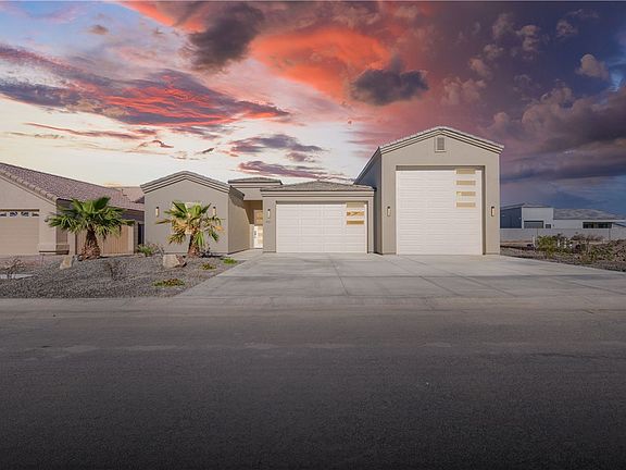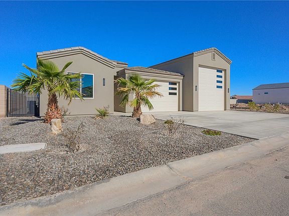 Welcome to 1821 Desert Bloom Drive, a recently built semi-custom home in the highly sought-after Cimmaron Lakes community in Mohave Valley, AZ. This stunning 2-bedroom, 2-bathroom home features an expansive open-concept living area, perfect for entertaining and everyday living. The spacious kitchen boasts sleek stainless steel appliances, ample cabinetry, and modern finishes that will delight any home chef. For those with a passion for outdoor adventure, this property offers a nearly 60-foot RV garage and an additional boat deep garage, providing plenty of space for your toys. Enjoy the large backyard with a covered patio, ideal for relaxing or hosting friends and family. As an added bonus, access to the Willow Valley Association Marina is available for a fee, giving you the perfect launch point for enjoying the Colorado River and the surrounding area. Don't miss the opportunity to make this beautiful home your own!