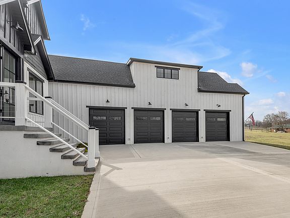 This striking newly constructed estate seamlessly blends luxury and farmhouse elegance amongst 17 rolling acres. The heart of this home is the chef's kitchen, appointed with custom quartz countertops, a waterfall island and commercial grade appliances-ideal for culinary enthusiasts. This opens to a grand two-story great room featuring an exquisite tongue-and-groove wood beamed ceiling and bookend sliding glass doors, creating a perfect space for entertaining. Indulge in the spacious primary suite, with a spa-like bath offering a garden tub, marble-heated floors, and an oversized custom tile shower. Thoughtfully designed, the home also includes a dog wash room, mudroom, and an abundance of natural light throughout. The upper level features three generous bedrooms, each with ensuite access, plus a massive bonus room. The finished lower level impresses with a rec room, two bonus rooms and an indoor/outdoor gym complete with a custom bar. Relax on the oversized wraparound porch, surrounded by serene views, or unwind by the pond fed by a natural spring. Exceptional craftsmanship and unrivaled design make this home a true sanctuary for those seeking both luxury and lifestyle in nature.
