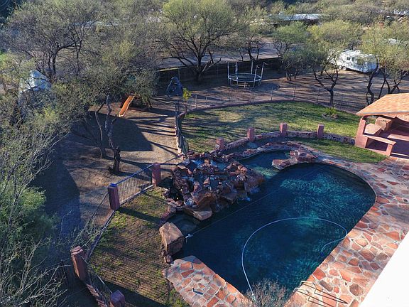 Tanque Verde Valley treasure!! Surrounded by trees, this secluded freshly painted and refurbished 4 bedroom 3 bath home is situated on .83 of an acre, pure enjoyment for you and your family. Featuring large swimming pool with rock waterfall, basketball court with bleachers, large storage shed, Playhouse and trampoline for hours of enjoyment. Enjoy the updated kitchen, baths and flooring....No carpet. Newer heating and cooling system and appliances Relax and entertain around the large ramada with fireplace, built-in BBQ, refrigerator and sink. Ideal for large family gatherings. A Must See. Plenty of room for horse facilities and approx. 1000 feet from the Tanque Verde wash with hours of endless trails.
