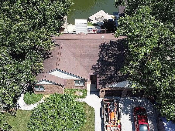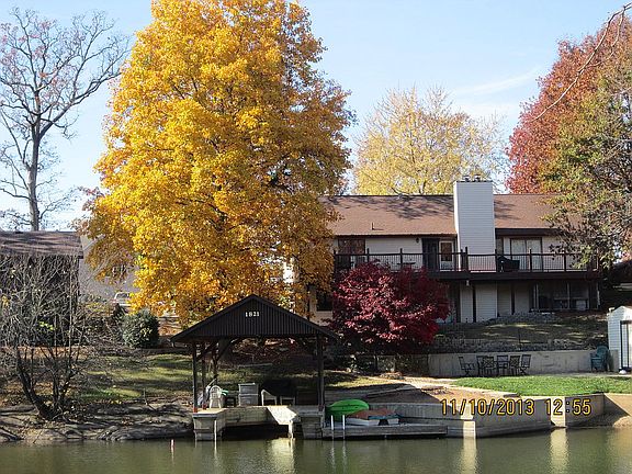 Lakefront home on Holiday Shores Lake equipped with a covered boat dock, concrete seawall, two level deck, established landscaping, shed and concrete patio area all on a no wake swim cove! The 3 bedroom 3 bath house with a 2-car attached garage was built in 1986 but has been renovated and maintained well, including the completion of the full walk out basement entertainment areas. We utilized two additional rooms in the basement as additional bedrooms or office areas over the years. The house is a brick and vinyl combination surrounded with beautiful established trees and landscaping located off Gate G of Holiday Shores. The original building plans can be available for viewing.