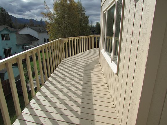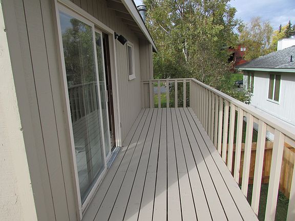 This centrally located home overlooks the Chugach Range is close to JBER and an easy commute to midtown and down town. It has a nice family room downstairs with the living room and kitchen and wrap around balcony upstairs.
