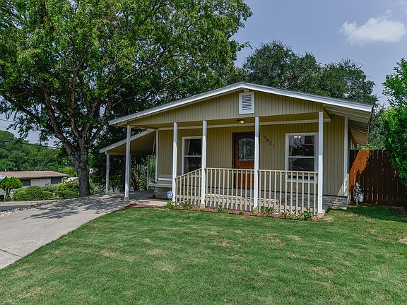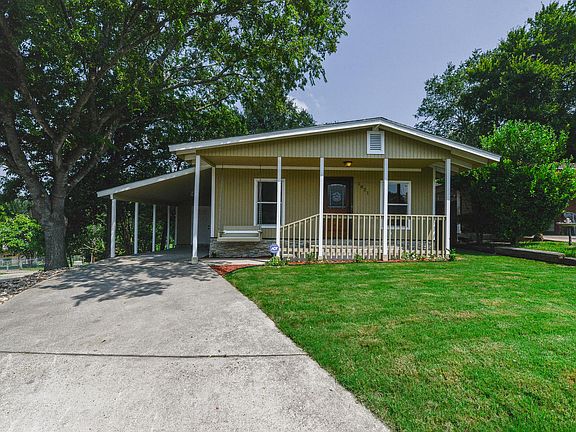 Welcoming front porch with swing. Knotty adler door opens to spacious living room with exposed wood beam. Living room opens to kitchen/dining with travertine floors, oak cabinets, SS appliances, glass backsplash and updated lighting. Bathrooms have travertine floors/walls, oak cabinets, and granite counters. Master bath has vessel sink and frameless shower. Spacious yard for entertaining and large deck to accommodate. Utility room located under carport houses the washer/dryer. 2" wood blinds throughout