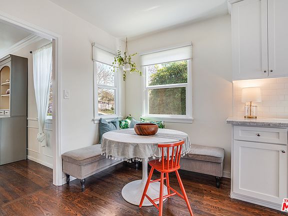 Charming updated westside home with a large yard. This stylish 3 br + 2 bath is perched high above the road, and features wonderful details like hardwood floors, a bay window, and fireplace. Large, bright living room and formal dining room have special crown molding and box paneling. Contemporary updates include a white shaker kitchen with marble countertops and sweet banquette. Primary bedroom opens to the garden, and features a walk in closet and an en-suite bath with double sink vanity and Carrera marble accents. Two additional bedrooms offer flexible usage to fit your needs, and the main bathroom has designer wallpaper and a double shower. The detached garage can serve as additional living space, or can be converted to an ADU for income. Enjoy summertime fun on the patio and large grassy back yard, or take advantage of the space and install a swimming pool. Centrally located near Beverlywood, Culver City, Beverly Hills, and trendy West Adams, and close to Metro stations and the 10 fwy, you'll find there's so much to love about this home!
