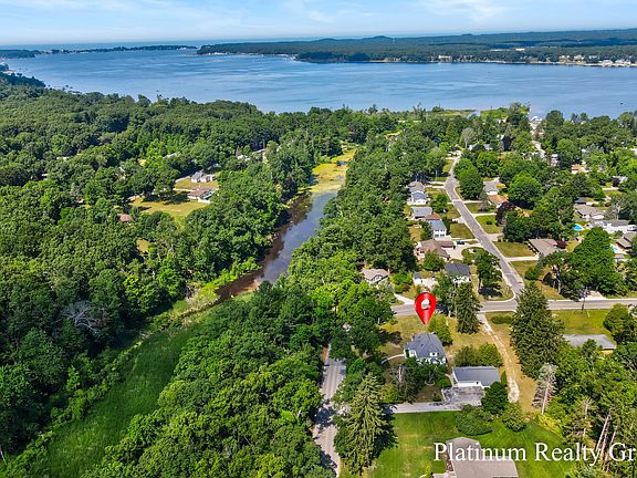 appliances will stay, including the double-oven range for the nights of entertaining and feeding the masses! Past the kitchen, you will find 2 bedrooms and a full bath. The original hardwood floors and intricate woodworking add to the charm. Do not look past the door that opens to stairs leading to an unfinished attic space with a window and skylights offering almost 800 square feet of added possibilities! There is a formal dining area with a beautifully finished 4-season room through double French doors. The living area has a wood-burning fireplace surrounded by built-ins that flow with the décor and character of the home. There is a third bedroom off the living area as well. All bedrooms are equipped with closets and automatic lighting. Downstairs offers plenty more storage and the laundry area with a sink. There is also a fully finished 14x30 room that can be used as a second living area, a future bedroom with added egress, and more. All windows have been replaced with the vast majority offering a tilt-in for easy cleaning, the roof was replaced in 2008, and the entire sewer line from home to street was done in 2017. If all of that is not enough, do not disregard the location! Close to town, shopping, restaurants, the local library, the Hart-Montague bike trail and anything you'd like to do on the lakeshore-this is IT! Nestled off the road and offering an over-sized lot with frequent visits from a variety of birds to appreciate, you are in the mix of what you need to do but have the privacy and tranquility so many desire. Do not hesitate on this one, schedule your private showing right away!