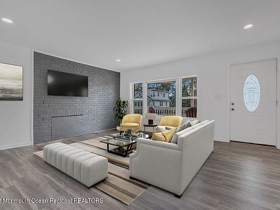 Just unpack! This home features new kitchen, white shaker cabinetry, granite counter top, ceramic tile backsplash, new flooring, HVAC, garage door, new windows, freshly painted, recessed lighting new flooring. Outside offers a charming front porch, oversized driveway with two car garage and large backyard with ton of possibilities. The roof has been replaced down to the beams with an additional weather shield layer added. The basement can be easily finished for additional living space and has been waterproofed plus an additional sq. footage. Great opportunity to get into the neighborhood for under 400k.Minutes from Asbury Park downtown and beaches, closed to rt 18, GSP. Will not last come see today .