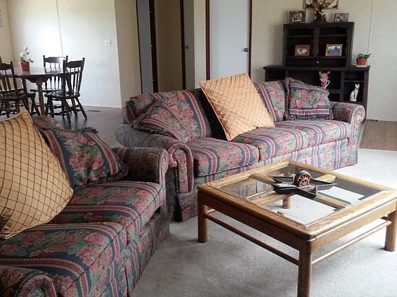 Almost new double wide on 1+acre in peaceful country setting. Great location for gardeners or animal lovers. Access to property from 2 roads.