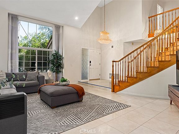 The spacious living area boasts soaring high ceilings and abundant natural light, creating a warm and inviting atmosphere. A guest half-bathroom is located on the main floor for added convenience.