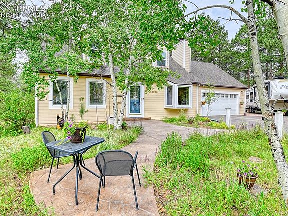 Welcome to this charming Walden home on over one acre, perfectly situated at the end of a peaceful cul-de-sac. Flower boxes on the dormers add to its inviting curb appeal, with a large front yard for play & a wooded backyard to explore—this property truly shines with pride of ownership. This versatile 5-bedroom home offers multiple configuration options. The bright main-level bedroom features double closets & sits next to a full bathroom, perfect for guests or multi-generational living. Upstairs, the private master suite includes a spacious bedroom, full bath with double sinks, & office that could also serve as a nursery. Step into the living room, where a cozy wood-burning fireplace with a hidden garage pass-through for easy wood loading is flanked by custom built-in bookshelves. The updated kitchen boasts quartz countertops, stainless steel appliances, double ovens, & multiple seating areas, from the breakfast bar to the formal dining room. Bay windows frame serene views of the property and bring in abundant natural light—ideal for wildlife watching. Downstairs, brand-new carpet highlights a large family room with space for a gym, plus two bedrooms & a ¾ bath, perfect for kids, guests, or a home office setup. Outside, enjoy the best of both worlds: a sprawling front lawn, plus tall Ponderosa Pines offering privacy and shade. The property has original covenants but no active HOA, giving you flexibility with room to build a detached garage or workshop. Recent updates—new A/C, Class 4 roof, driveway, RV pad, and fresh paint—make this home move-in ready. Located in the highly sought-after Walden neighborhood, you’ll have access to trails, stocked ponds, and walkable schools (Kilmer Elementary and Monument Academy). All this, with quick access to both Colorado Springs and Denver, plus nearby schools, shops and restaurants. Don’t miss this rare opportunity to enjoy Black Forest living with modern updates, space to grow, and unbeatable convenience!