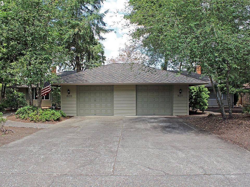 Fabulous and rare duplex in Lake Oswego's desirable Bryant Woods neighborhood. Each unit offers 3 Bedrooms, 1 Full Bath and 1,102 sq feet of living space including a wood burning fireplace with a detached 1 car garage. Great investment opportunity or Live-In one side and receive income from the other. In 2017, the roof and gutters were replaced and the exterior repainted. Both units have been replumbed. Photos with vacant rooms are of 18211 (Unit 2), which was tastefully renovated in 2016/2017, including completely new kitchen with custom cabinetry with a tile backsplash as well as an LVT floor with "Bamboo" look, new carpet in bedrooms, new appliances, removal & abatement of original popcorn ceiling and a new Cedar deck. Photos of furnished rooms are of 18213 (Unit 1)which has had more limited updates including newer kitchen appliances and newer paint in kitchen and bath. It has been rented to the same tenant for 20+ years and is rented for significantly less than market value. Sellers estimate it would rent for a minimum of $1800 with minimal updates. Both units have fully fenced backyards. Both units have tenants on month to month leases. With access to a neighborhood pool, the Lake Grove swim park, extensive walking trails, adjacent to Lakeridge Middle School and a short distance from the new River Grove Elementary school the location is unbeatable.