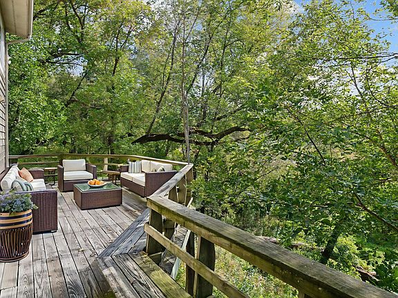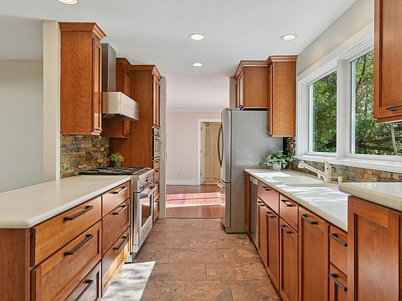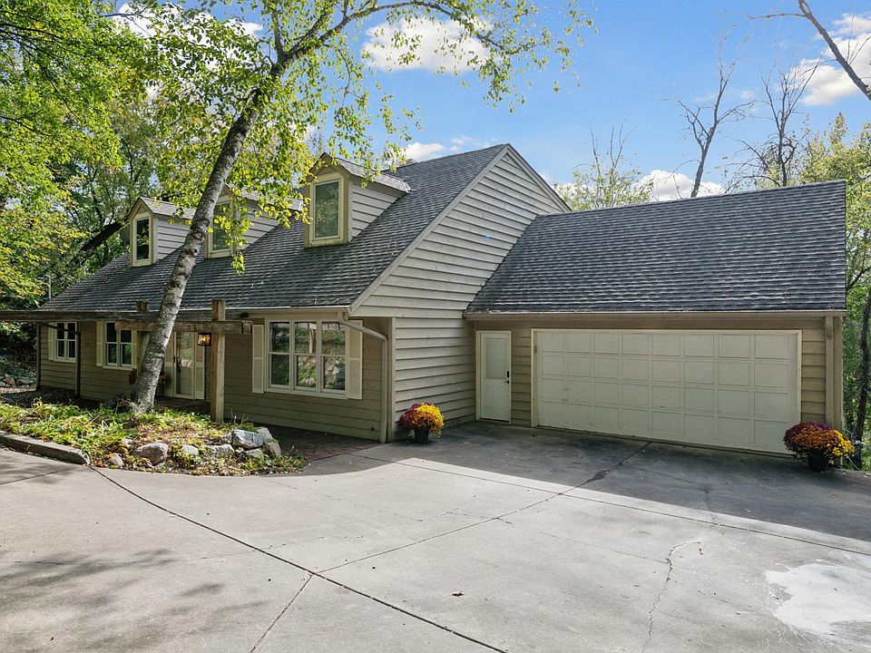 First time available in over 40 years! This impressive home blends warmth, character, and versatility with main level living, as well as serene tree-top and nature views. The main level showcases a dramatic vaulted ceiling, cherry hardwood floors, and an updated dron Geo atheri kitchen with rich cherry cabinetry, and a picture window framing the scenic backdrop. Generous gathering spaces include both living and family rooms, a cozy wood-burning fireplace, and access to an expansive deck-perfect for entertaining or quiet relaxation. Three bedrooms, including one of two primary suites, complete the main level. Upstairs, discover a spacious second primary suite, 5th bedroom, flex room, sitting area, and loft-ideal for family, guests, or creative spaces. The unfinished walkout lower level, with 10-foot ceilings, fireplace, and bath rough-in, provides an excellent opportunity to add value and expand your living space. Nestled on a beautiful 1.35-acre setting surrounded by mature trees, wildflowers, and natural grasses, this property offers room to create a manicured yard, play area, a,or garden oasis. Added bonus of a heated driveway and lower level garage for your lawn tools and toys. Perfectly positioned within the sought-after Minnetonka School District with convenient access to schools, everyday amenities, and commuter. One-year HSA home warranty included.