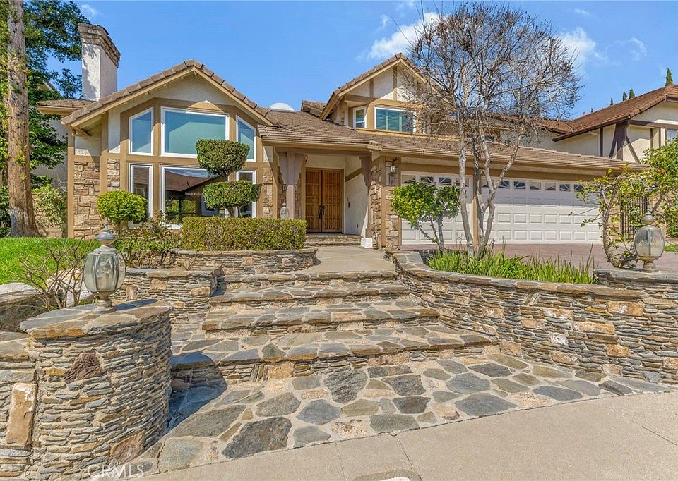 This stunning family home is located in Porter Ranch in the prestigious "Northridge View Estates" tract, and it is fabulous inside and out! Features include... An outstanding floor plan with 3,986 sq. ft. of living area with 4 bedrooms, 3.5 bathrooms, a living room, a formal dining room, a huge game/bonus room, a very large family room, a breakfast area, a pool & spa, and the home has a 3 car garage. The double door entry leads to a beautiful formal entry which opens to an elegant formal living room with soaring ceilings, expensive tiled flooring, a fireplace, and custom window treatments and lighting. Off the living room, is a true formal dining area with custom ceilings and stunning flooring. The huge gourmet island kitchen has granite counters, lots of cabinet space, a double electric oven, a 6 burner gas range, a large pantry, and an attached breakfast area. The kitchen opens to a very large family room which has coffered ceilings, a fireplace, custom shutters and lighting, built-in display shelving, tiled floors, and a wet bar. Downstairs, there is also a bedroom with an attached bathroom, a separate guest bathroom, and a laundry room. Take the elegant spiral staircase upstairs to the huge all purpose game room/bonus room with wood floors, built-in cabinets, and custom lighting. Upstairs, there are two spacious bedrooms which share a full bathroom, which has a separate tub and a shower. Upstairs, there is also a fabulous master suite, which has a large sitting area with a fireplace, a balcony with a lovely view of the backyard, a large walk-in closet, a separate wardrobe closet, a fabulous master bathroom with a huge mirrored vanity with double sinks, a spa tub and a separate shower. The home also has upgraded dual pane windows. Outside features... outstanding exterior appeal with professional landscape with custom stone work. The wonderful backyard has a beautifully designed pool, spa, and waterfall. There is also a retractable patio cover and a built-in bar-b-q. Note: The pool equipment can be controlled via wi-fi, which was recently installed. There is also an EV charging station in the 3 car garage. The home is also on a beautiful cul-de-sac street. Note: there are 4 community tennis courts and 1 community basketball court near by. Just move-in and enjoy the luxury this home has to offer!!!