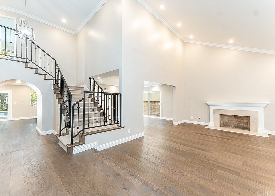 Welcome to this fabulous, updated 4 bed home in desirable Northridge View Estates. Completely updated w/gorgeous engineered hardwood flooring on the 1st floor & high-end carpeting on the 2nd level. Featuring crown molding, high-ceilings & recessed lighting throughout. Enter grand, formal entry w/dramatic winding staircase & 2-story ceilings. Formal living rm showcases high ceilings & stylish FP. Large family fm is highlighted by a vintage-style, floor-to-ceiling, brick fireplace w/wall-to-wall hearth. Kitchen has been beautifully updated w/marble-like quartz countertops, white shaker cabinets & stainless-steel appliances, including a built-in range & double wall oven. Charming, rounded breakfast nook includes access to the backyard. Formal dining rm has elegant tray ceiling & glass doors leading to side courtyard. The 1st level also includes 1 bedroom & 2 bathrooms for guests, laundry room w/sink & storage, as well as a sizeable bonus room w/center fireplace flanked by built-in shelves. 3 bedrooms upstairs, including a large master w/double-door entry & private balcony overlooking the backyard. The grand en-suite bath includes a glass-enclosed, walk-in shower, floating soaking tub & quartz countertops w/dual sinks. The backyard is an entertainer's dream w/newly updated pool & spa, raised area perfect for firepit seating & a pergola covered patio area. The HOA community includes tennis courts & is conveniently located near outdoor recreation & easy access to the 118 freeway.