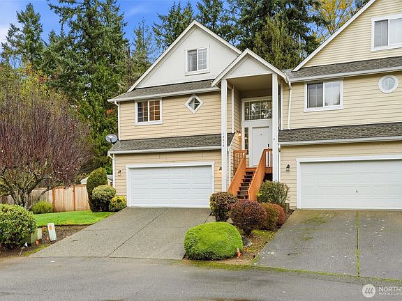 Situated in a quiet cul-de-sac and backed by evergreens, this spacious Lake Tapps home offers comfort, privacy and over 2,000 square feet that lives like a single family home. The main level feels bright and welcoming with fresh paint, modern lighting, and new kitchen appliances. The primary bedroom is conveniently located on the main floor with a double vanity. Upstairs, two bedrooms provide flexible space for guests, work, or play. The finished lower level adds a generous bonus room, new flooring, and a large flex area. Enjoy a fully fenced yard, a new furnace, a newer heat pump, a newer water heater, and the HOA that covers water, septic, front yard care, and private lake access at nearby Jenks Park. Imagine the life you’ll create here!