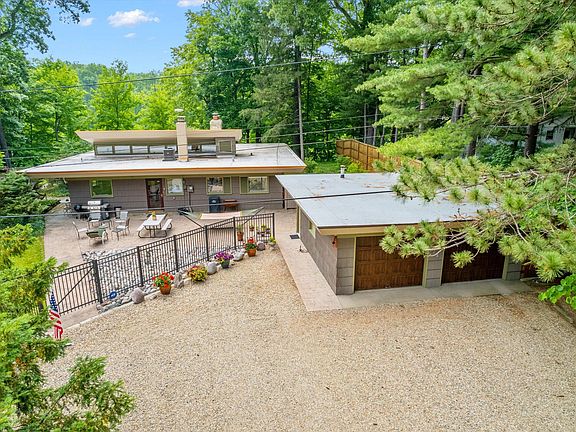 A one-of-a-kind, completely restored California Modern style home that rests on 2.2 acres with 150 feet of frontage on the St. Joseph River just outside Niles, Michigan. The home was custom-designed in January of 1952 by the Mid Century Modern Architect Andrew A. Toth for Mr. and Mrs. J.A. Melton and built later that year on this 60 foot bluff overlooking the river. • Although the house is tucked away on its 600-foot, Red Pine lined gravel driveway, it may feel like the north woods, but it is in close proximity to everything you will need or want. The Boathouse is ''Grandfathered'' on this stretch of the St. Joseph River that stretches from above the French Paper Dam in Niles, Mich. to downtown South Bend, Ind. below the Century Center.