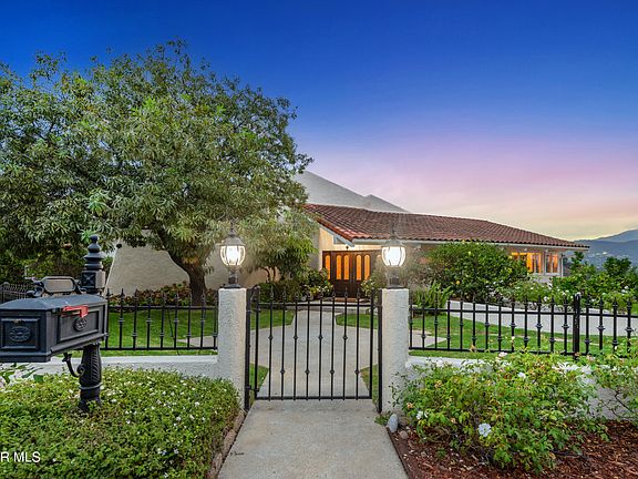 Ultimate Thousand Oaks View Estate ideally located at the end of a serene cul-de-sac in the heart of the Conejo Valley. This extraordinary Mediterranean retreat offers panoramic views of the Barranca and the Santa Monica Mountains, and it's surrounded by the scenic hiking trails of Wildwood. This approximately 4,000 sq. ft. estate features 4 bedrooms plus an office and 3 1/2 bathrooms. Step inside and be immediately greeted by vaulted beamed ceilings and walls of windows that frame dramatic views from nearly every room. The spacious living area is highlighted by a striking floor-to-ceiling rock fireplace, creating a warm focal point for gathering. The open concept floor plan flows seamlessly into the dining and entertaining spaces, with natural light pouring in from every angle. On the lower level there's a massive bonus/game room with its own breathtaking views, a perfect entertainment hub. The outdoor living has expansive jet lined views with patios, fire pit, professional landscaping, and a private putting green, all designed to maximize the home's hillside setting. This is a very special offering, a rare opportunity to own one of the most view-centric homes in Thousand Oaks, blending privacy, space, and unmatched access to nature in a way that is seldom available.