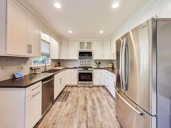 Mount Prospect Stunner - Walk to Parks, Top Schools & So Much Space! This Mount Prospect showstopper checks every box on today's buyers' wish lists-modern open layout, stylish upgrades, a finished basement, and four generous bedrooms-all just steps from parks and award-winning schools. Set on a sprawling corner lot in one of Mount Prospect's most sought-after neighborhoods, this home offers walkability to Burning Bush Trails Park, River Trails Park District, Woodland Trails Pool, and the charming shops and dining of downtown Mount Prospect and Randhurst Village. Zoned to Indian Grove Elementary, River Trails Middle, and nationally acclaimed Hersey High School, you'll love the convenience and community this location offers. Inside, sunlight streams through a bay window in the living room, flowing seamlessly into the dining area, where cathedral ceilings create an airy, welcoming atmosphere, perfect for hosting gatherings of any size. The updated chef's kitchen impresses with crisp white cabinetry, quartz countertops, and WiFi-enabled stainless steel appliances (including newer Samsung range and microwave). A bright eat-in nook opens to the spacious great room anchored by a statement fireplace, with oversized sliding glass doors leading to your serene backyard oasis-perfect for indoor-outdoor entertaining. Upstairs, retreat to four generously sized bedrooms including a primary suite with three closets, chic vanity area, and ensuite bath with walk-in shower, while three additional bedrooms offer ample closet space with custom organizers and option for a home office. Bright hall bath provides space for everyone and adorns this level. A finished basement adds even more versatility for a media room, playroom, fitness studio, or office. Outside, the fully fenced yard invites play and relaxation with a patio, lush lawn, and handy storage shed. Thoughtful updates-dual-zone 16 SEER AC (2015), furnace (2015), siding painted (2019), Samsung washer (2009), dryer (2021), refrigerator (2009), microwave & range (2021), and Frigidaire dishwasher (2010)-provide peace of mind. This is the perfect blend of style, space, and location-walkable to everything and ready to welcome you home.