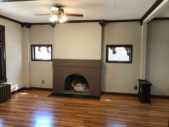 This home sits on a large corner lot with a detached two-car detached garage. Hardwood floors throughout and beautiful woodwork through living room, dining room and kitchen. There are three bedrooms upstairs with the fourth in the attic level. The fourth bedroom has a bathroom with shower.