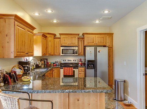 Excellent value in this hard to find 6 bedroom/3 bath home. The main floor features high quality granite tile in the entry and the kitchen. High end features in the kitchen include alder cabinets, stainless appliances, and granite tops with a chiseled edge. The master bath features a tiled shower and deep soaking tub. The finished basement features 3 bedrooms, bathroom with tiled shower, and a large family room. Each basement bedroom has a walk-in closet and high quality wood doors and trim throughout. The lighting complements the quality finishes. Enjoy entertaining or watching the sunsets over the Big Holes from the large maintenance free deck. The Settlement features a pool and soccer fields. This home has an excellent location at the desirable north end of the subdivision.