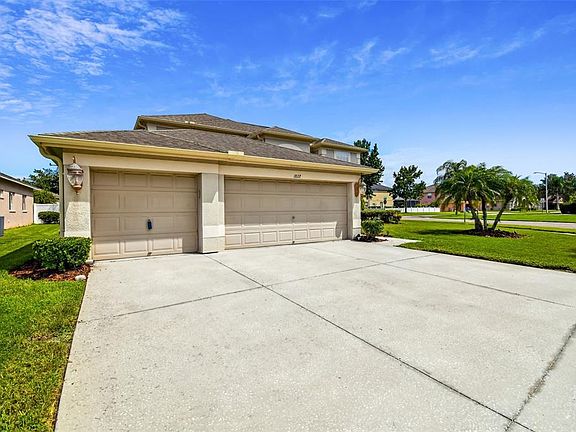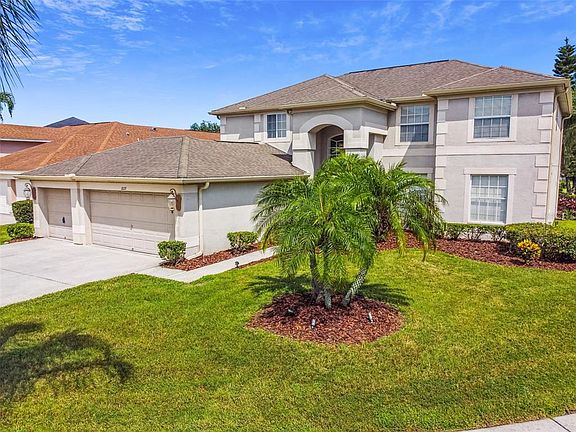 Thousand Oaks East, Lovely 2 story, 4 bedroom, 3 bathrooms, plus an office/den, 3 car garage on corner lot is waiting for you! Gorgeous custom double glass doors lead you into the beautiful 20-foot foyer. 1st floor: Formal living/dining room, family room with sliding glass door, Den/Office, laundry room, hall bathroom with tub and an amazing chefs kitchen that boasts: Brown cherry cabinets, granite counter top, center Island, stainless steel appliances, huge wall pantry and a sliding glass door to large screened in Lanai. 2nd floor: spacious master bedroom with a great ensuite that features: a jacuzzi tub, dual sinks, walk in shower and an enormous walk-in closet. 3 additional airy bedrooms, a hall bathroom with tub. 3 car garage. New 2 HVAC systems 6/22, water heater 2019, entire house has an in-wall pest defense system, gutters and downspouts. Top rated schools, close to shopping, restaurants, hospitals, Trinity YMCA, golf courses, Suncoast highway and a short drive to Floridas award-winning beaches. Seller motivated