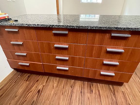Tall ceilingsUpgraded kitchenHardwood laminate flooringCeiling fans