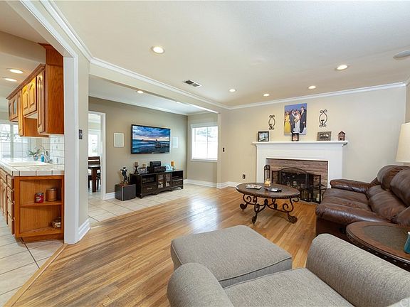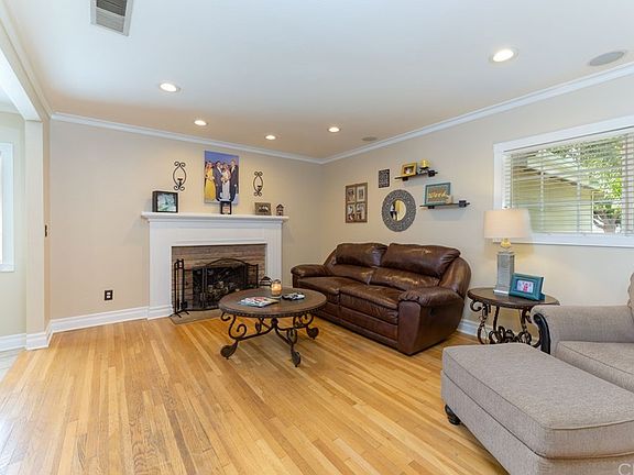 El Dorado Park South neighborhood home with Entertainer's Backyard! Beautifully maintained home with large living room featuring hard wood floors, cozy fireplace, crown moulding, and recessed lighting. Open kitchen features newer stainless steel appliances, kitchen island, pass through countertop, tile flooring, lots of cabinets, recessed lighting, and large laundry closet. Large dining room opens to covered back patio. Large master suite has double closets, huge walk-in shower, and remodeled vanity with granite counter. Second bath has been remodeled with tile flooring, tile bath surround, and granite top vanity. Backyard is a must-see with custom patio covers, outdoor kitchen with BBQ, refrigerator, tile counter, and wall mounted television. Firepit and large above ground jacuzzi are perfect for night time entertaining. There is also a large gated turf area that is perfect for a playground or dog run. All of this walking distance to El Dorado Park, Golf Course and highly rated Tincher Preparatory School.