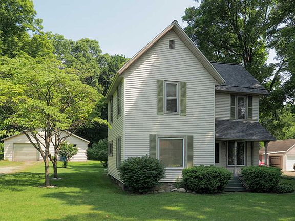 Welcome to your new home! This charming farmhouse that sits on a half acre of land is ready for a new owner and zoned as residential and commercial! Upon entry you will find a spacious living room and formal dining room. The kitchen has a large pantry and oak cabinets. Continuing on there is 1 bedroom on the main floor as well as the laundry! Heading upstairs you will find 3 additional huge bedrooms. Heading outside you will find a 5 year old roof that was completely torn off and a brand new 120ft well! The 1 stall detached garage is big enough to fit 2 cars deep and have a workshop! Take in the remainder of summer on your covered front porch with a cup of coffee. Schedule a showing today!