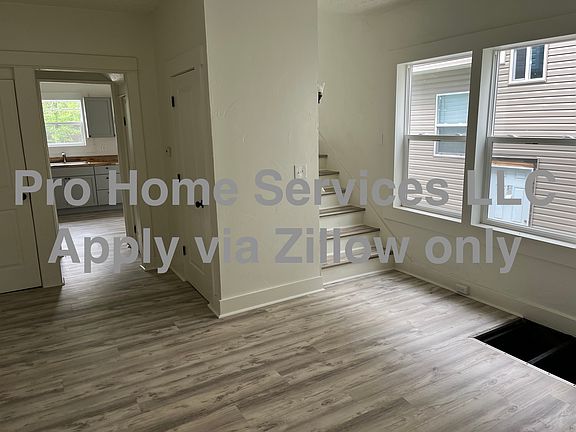 Completely renovated 3 bedroom, 1.5 bath duplex home! Brand new LVP throughout with 9 foot ceilings add to the spacious layout. Half bath is located on main level for added convenience, full bath and 3 large bedrooms located on 2nd floor. Brand new HVAC system to keep you cool in the summer and warm in the winter. Unfinished basement has washer and dyer hook-up. Home will be furnished with refrigerator and stove. There is private parking and small covered porched on the rear of the home adding to the charm of this home. Grass maintenance is included with your lease.