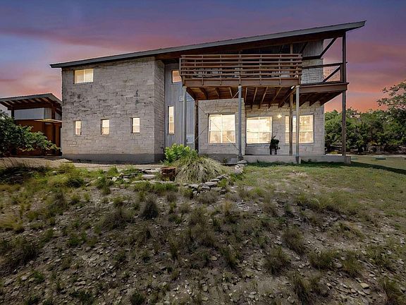 Enjoy the stunning panoramic sunrise from your large second floor covered porch on this 2.4 acre estate. Secluded from the street and its neighbors, this contemporary home is protected by its 14 foot wide wrought iron driveway gate and fencing. The property includes 2 separate lots in a well-maintained subdivision of other estate homes. This 3 bedroom, 2.5 bath two story sits on a hill overlooking the hill country only 8 miles from either Bee Cave, Texas or Dripping Springs. Located in Travis County within Lake Travis ISD, there are no city taxes to pay. This open-concept home has tile, wood and carpeted floors, all granite and marble tops, stainless steel appliances, large pantry, double walk-in glass shower doors, limestone fireplace and vaulted ceilings with ample parking for 4+ cars, attached outdoor shop, well house shed with storage. You can build a separate Casita, Barndominium, or even another separate home on the included adjacent 1.4 acre lot. Up to 4 horses are allowed when both lots are included. Underground utilities insure you won't miss the starry nights within this "dark sky" designated area. The home could be retrofitted with solar panels to go off-grid with its water well, rain water collection and aerobic septic system