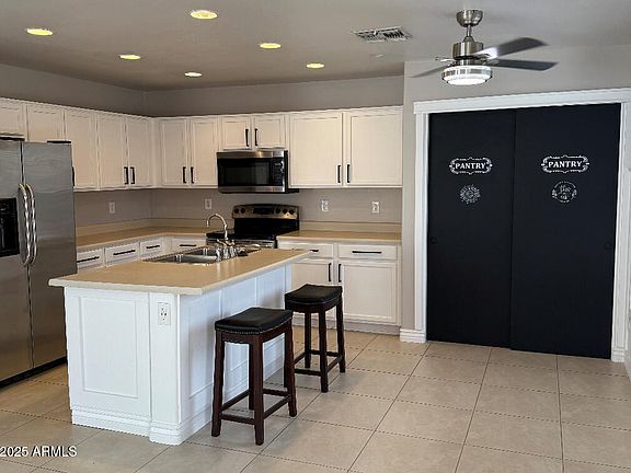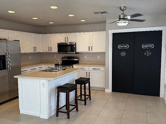 NO HOA! 4BD/2BA home with a 2-car garage and 2 RV gate entrances. The open floorplan includes a sliding glass door to the covered patio and an 8,440 sq ft lot. There's a spacious eat-in area off the kitchen, which features stainless-steel appliances, a center island with sink and dishwasher, a large pantry, and plenty of cabinetry. The master bedroom has an ensuite bath with separate tub and shower, double sinks, and a large walk-in closet.