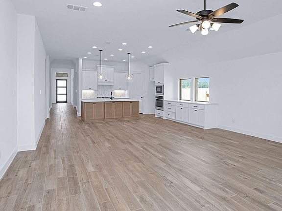READY FOR MOVE-IN! Entry with 13-foot ceilings framed by game room with French doors. Extended entry flows to the kitchen and dining area. Island kitchen with built-in seating space, 5-burner gas cooktop and a corner walk-in pantry. Family room with a wood mantel fireplace and wall of windows. Secluded primary suite. Primary bath offers dual vanities, freestanding tub, separate glass enclosed shower and two walk-in closets. Guest suite with a full bathroom and a walk-in closet. Secondary bedrooms and a utility room complete this one-story design. Covered backyard patio. Mud room just off the three-car garage.