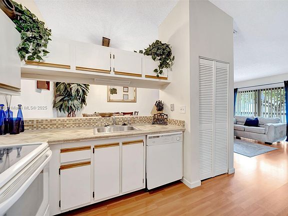 Beautiful 2BR/2BA, PLUS DEN with CLOSET – Move-In Ready! A versatile 3rd bedroom ideal for an office or guest room. NEW METAL ROOF, Enjoy HURRICANE IMPACT WINDOWS, private entrance, Volume Ceiling, laminate flooring throughout, updated lighting/fans, and custom closets in all bedrooms. The open kitchen offers ample cabinet space, bar seating, pantry, and appliances. The primary suite features a tub, shower, and WALK-IN custom closets. The oversized second bedroom includes mirrored closet doors and California closet system. In-unit WASHER & DRYER included. HOA includes, INTERNET, CABLE, WATER. Amenities: Pool, Basketball, Pickleball, Volleyball. Gym, Clubhouse, Child Play Area, Hand/Paddle ball & More! Furniture Negotiable. AC 2020. PROPERTY QUALIFIES FOR 100% FINANCE AND NO PMI. CALL TODAY