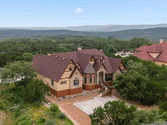 Welcome to luxury living at its finest atop the highest point of Shadow Canyon in Helotes. Enjoy one-story living with all bedrooms on the main level and a loft-style game room upstairs. This exquisite home offers panoramic views of the breathtaking Hill Country and backs to the majestic Government Canyon State Natural Area. Situated on 1.19 acres, this oasis of tranquility offers a sparkling swimming pool and xeriscaped yard, ensuring ease of maintenance and endless outdoor enjoyment. Step inside to discover a world of refined elegance and modern convenience. Entertain in style in the expansive dining room with a wall of windows overlooking scenic vistas, perfect for hosting parties and memorable holiday gatherings. The kitchen with granite countertops and Bosch appliances is a chef's dream, offering ample storage, a prep island, and generous bar-top seating. Wine enthusiasts will enjoy the appeal and function of the adjacent wine cellar through the arched iron entrance doorway. While working in your dedicated home office space, when you're ready to enjoy a coffee break, step outside through the French doors to relax on the covered front patio. The spacious living room with grand ceilings offers a welcoming gathering space with large picture windows looking out upon the backyard and pool. Escape to the primary suite featuring dual closets and a luxurious ensuite bath with a dual entry shower. The spacious garden tub offers a can't-miss feature of a ceiling-mounted bath filler. All bedrooms are located on the main level and offer ample storage with walk-in closets. One secondary bedroom provides an ensuite bath while the other two secondary bedrooms are connected by a shared spacious adjoining bath. Upstairs, a loft game room awaits, ideal for leisurely pursuits. This space is plumbed for water, meaning future entertainment possibilities abound for a kitchenette or wet bar. Outside, the sprawling covered patio, swimming pool, and standalone sauna offer the ultimate setting for relaxation and recreation against the backdrop of nature's splendor. This exceptional residence has been upgraded with a new King Ranch fence, state-of-the-art water softener system, two new hot water heaters, and all exterior stucco has been painted and sealed within the last two years. The pool pump and filter are brand new as of June 2024. A 500-gallon propane tank stands ready to heat the pool, or can be used to fuel a whole-home generator. With its prime location, premium features, and unmatched luxury, this home presents a rare opportunity for discerning buyers seeking the epitome of Hill Country living in Helotes. Don't miss your chance to own this extraordinary pinnacle of Shadow Canyon living!