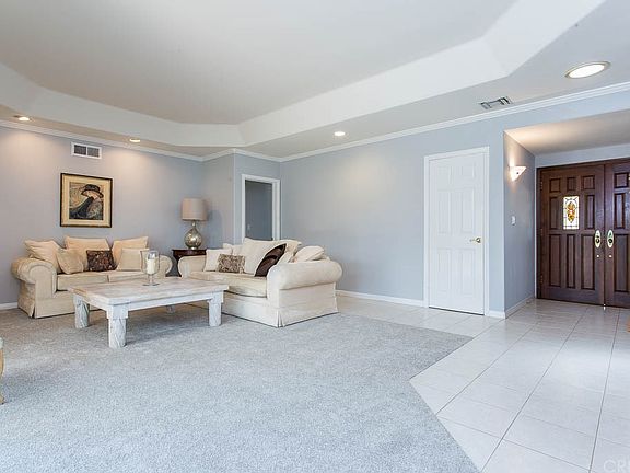 How soon can you move??!! This beautiful house is ready for new owners. With an ideal cul-de-sac location, the perfectly manicured yard will greet you as you come into this house. The extensive front porch makes a lovely sitting area. As you enter you will find yourself in a light and bright living room with recessed lighting, a marble fireplace with a custom wood mantel, a magnificent coffered ceiling and a large sliding door leading to the backyard. The oversize master bedroom has crown molding, new carpet, and is freshly painted. The master bathroom enjoys a Roman tub and a shower. Three very spacious bedrooms will accommodate your family. The kitchen boasts of a double oven and large pull out drawers that make working in the kitchen a delight. The eating area just out of the kitchen will make meals a fun time. The large covered patio will be the delight of the new owners along with the large pool and spa. The yard is a child's paradise. Come and build your family memories!