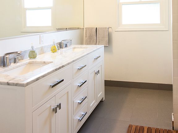 - RoomBathroomFeatures: Low Flow Toilet(s), Shower in Tub, Bathtub, Shower, Remodeled, Walk-in shower, Double sinks in bath(s), Exhaust fan(s), Stone Counters